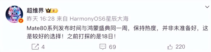 最初有消息称,它将与鸿蒙盛典同周亮相,日期指向11月18日;随后又有爆料称将延至11月25日——一个典型的“周二发布日”。而如今,最新风向又指向“11月最后一周”。一变再变的日期,消耗的不仅是媒体的耐心,更是用户的期待。
